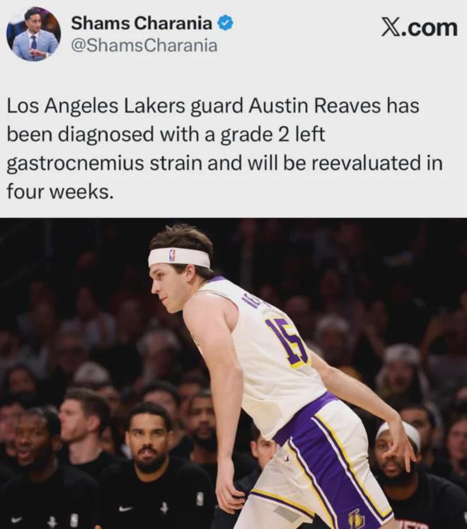 - 2.4亿顶薪+全明星泡汤?里夫斯伤停至少4周,湖人再遭重创