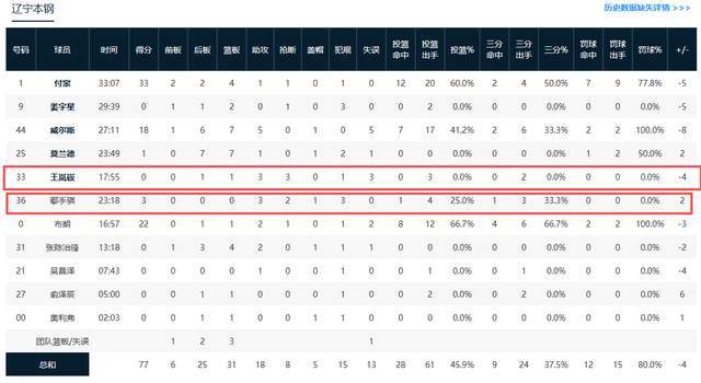 - 奇葩数据!辽篮五将得分挂0 两人还是首发 杨鸣难为无米之炊
