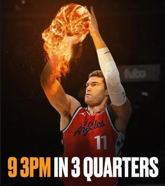 据悉,大洛这一战,成为了本赛季第八位单场命中9记三分的球员,不过,是唯一一位中锋球员。
