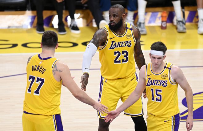 湖人本赛季的阵容困境,早已被数据扒得一干二净。根据数据网站 Databallrs 的统计,詹姆斯、东契奇与里夫斯的三人组,在134分钟的上场时间里,净效率值低至 - 11.2。这组数据的背后,是两位持球核心的球权冲突,是进攻节奏的混乱拖沓,更是球队攻防两端的失衡。而与之形成鲜明对比的,是东契奇与里夫斯搭档、詹姆斯下场休息的阵容 ——267分钟的时间里,净效率值高达 +19.9,展现出碾压级别的统治力。