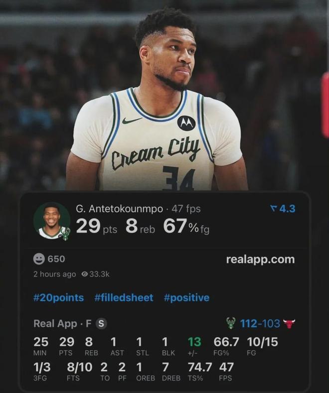 字母哥复出首战,仅用24分钟投篮15中10,高效砍下29分8板,带领雄鹿112-103击败公牛。