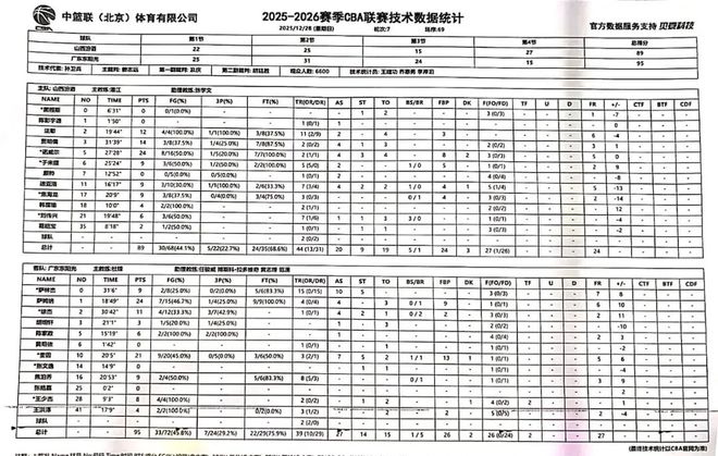 - 2025年12月20日 山东力克北控 珀塞尔27+5 陈林坚18分 里勒30分