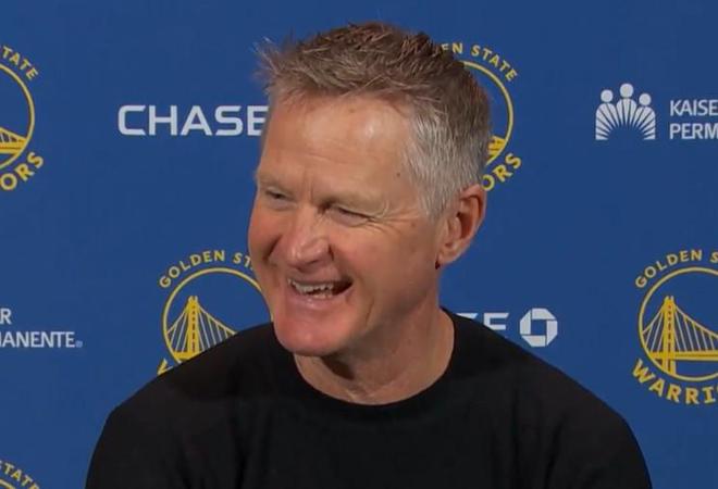 赛前在接受媒体采访时,有记者向勇士主帅史蒂夫-科尔提问“如何能够让自己变得更加年轻”,科尔思索片刻后笑着说道:“执教斯蒂芬-库里。”随后现场也都笑成了一片。
