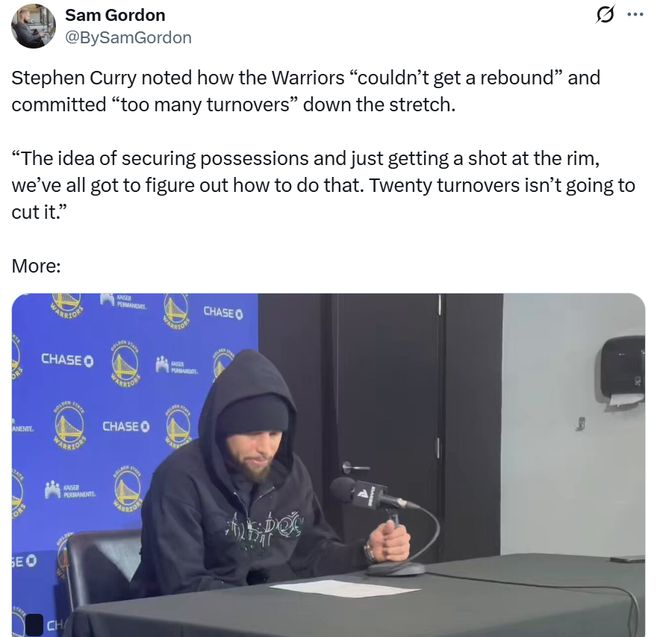 赛后接受采访,库里也毫不掩饰指出自己与全队的两大问题,那就是篮板保护与失误控制。