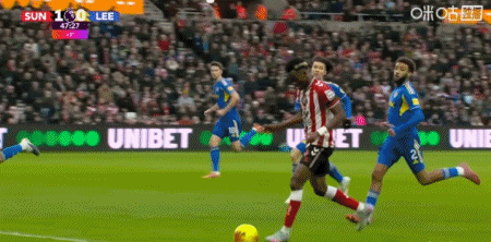 第47分钟,阿伦森助攻,勒温推射破门扳平比分,利兹联1-1桑德兰