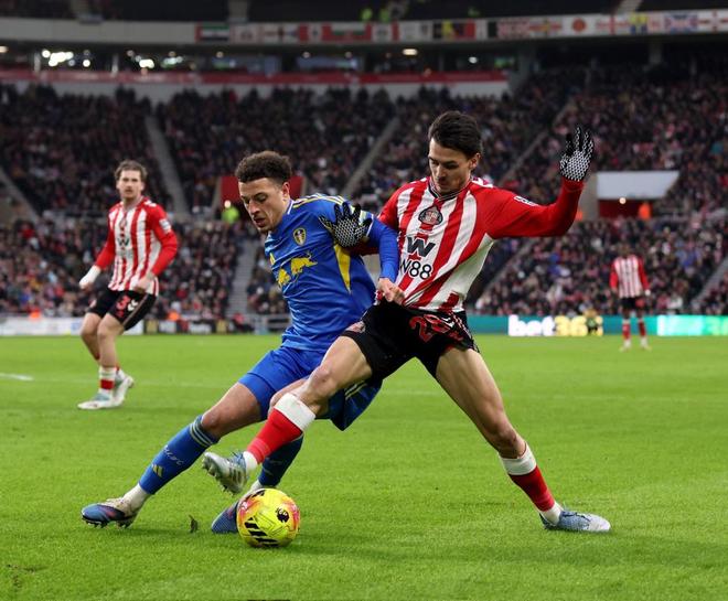 比赛开始后,桑德兰在场面上并不占优。利兹联在控球和射门次数上更为主动,而桑德兰则延续了本赛季的务实风格,更多依靠反击和中前场的个人能力寻找机会。